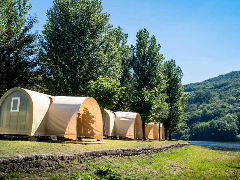 Glamping-Fans werden diese Art von Zelt lieben, denn Sie können Ihr Camping-Erlebnis in höchstem Komfort am Ufer der Dordogne in vollen Zügen genießen.