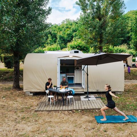 On the rental page, you will find all our prices and availability. Each listing includes the number of bedrooms, capacity (number of people), amenities, and whether there is a terrace. We have nothing to envy from hotels, and our guests appreciate the idyllic setting of our campsite in Corrèze.