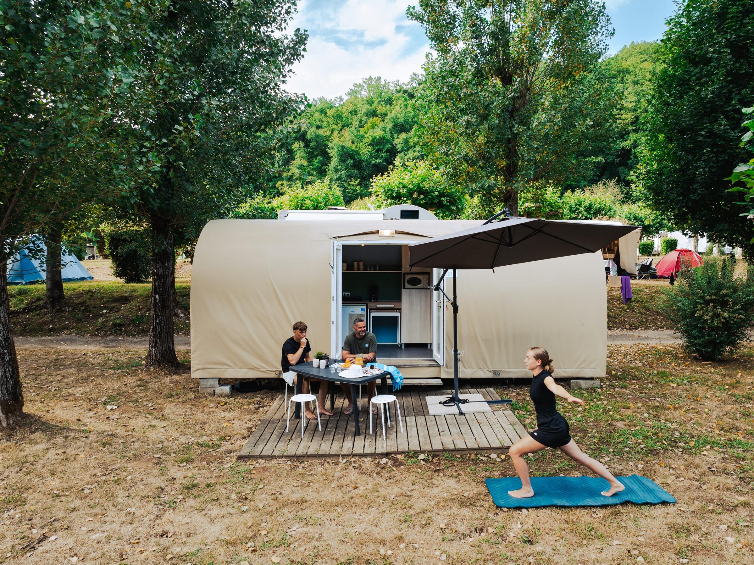 A los amantes del glamping les encantará este tipo de tienda, donde podrán disfrutar plenamente de su experiencia de acampada, con el máximo confort, a orillas del río Dordoña.