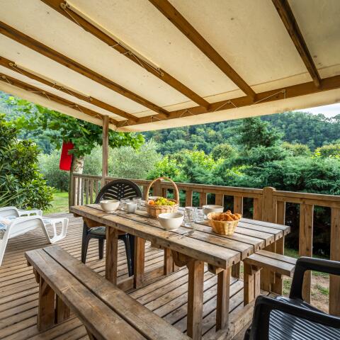 Je connaissais déjà ce camping et j’ai eu cette fois l’occasion de dormir dans un coco sweet soit des tentes pré installées et le concept est génial, nous sommes au bord de la Dordogne avec une vue magnifique. Nous avons pu commander des bonnes pizzas à emporter et faire du pédalo sur la Dordogne. Une très belle expérience à faire en famille, ces tentes pré installées sont une première expérience au camping, je recommande !!